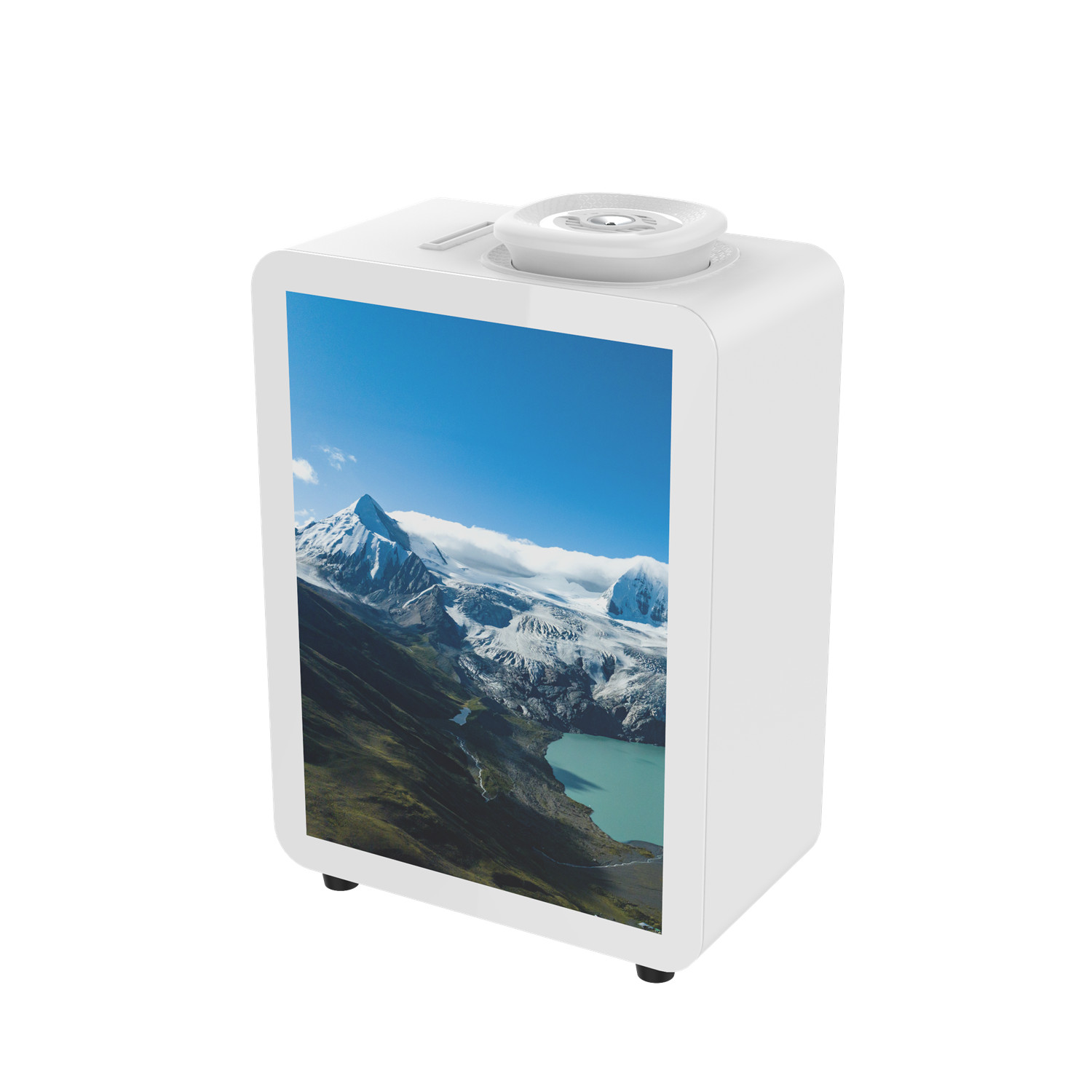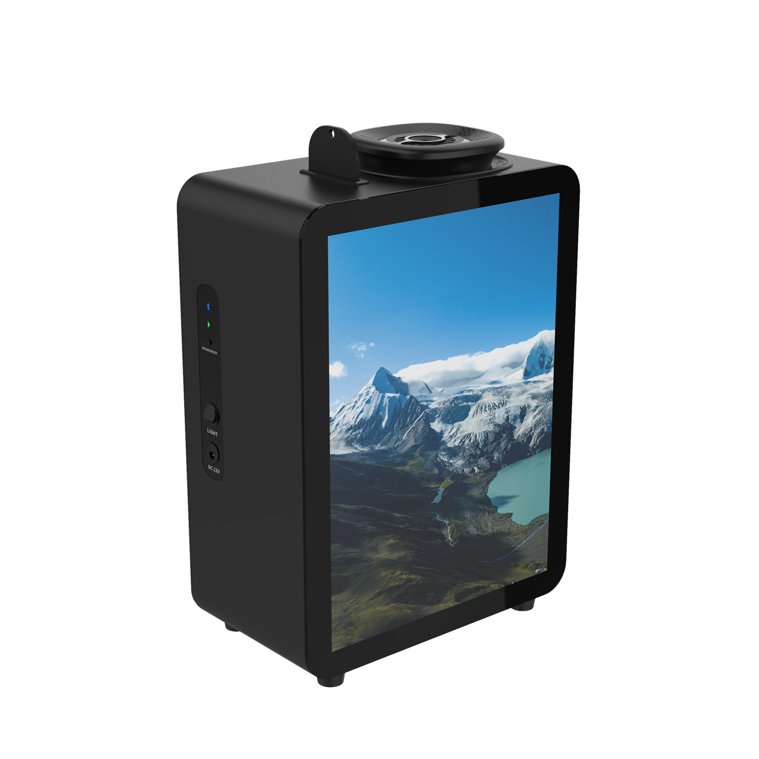 ST-01MA Ce diffuseur de parfum intelligent pour espaces de 2 000 à 3 000 m³ est conçu pour allier marketing olfactif et visuel. Doté d'un caisson lumineux publicitaire de grande taille et à panneaux interchangeables, il permet aux marques de synchroniser leurs visuels avec les changements de parfum pour une expérience sensorielle complète. D'une capacité de 500 ml, d'une construction métallique robuste et d'un fonctionnement ultra-silencieux (moins de 45 dBA), il est compatible avec une application Bluetooth et offre plusieurs options d'installation, notamment l'intégration au système de climatisation et la fixation murale.
