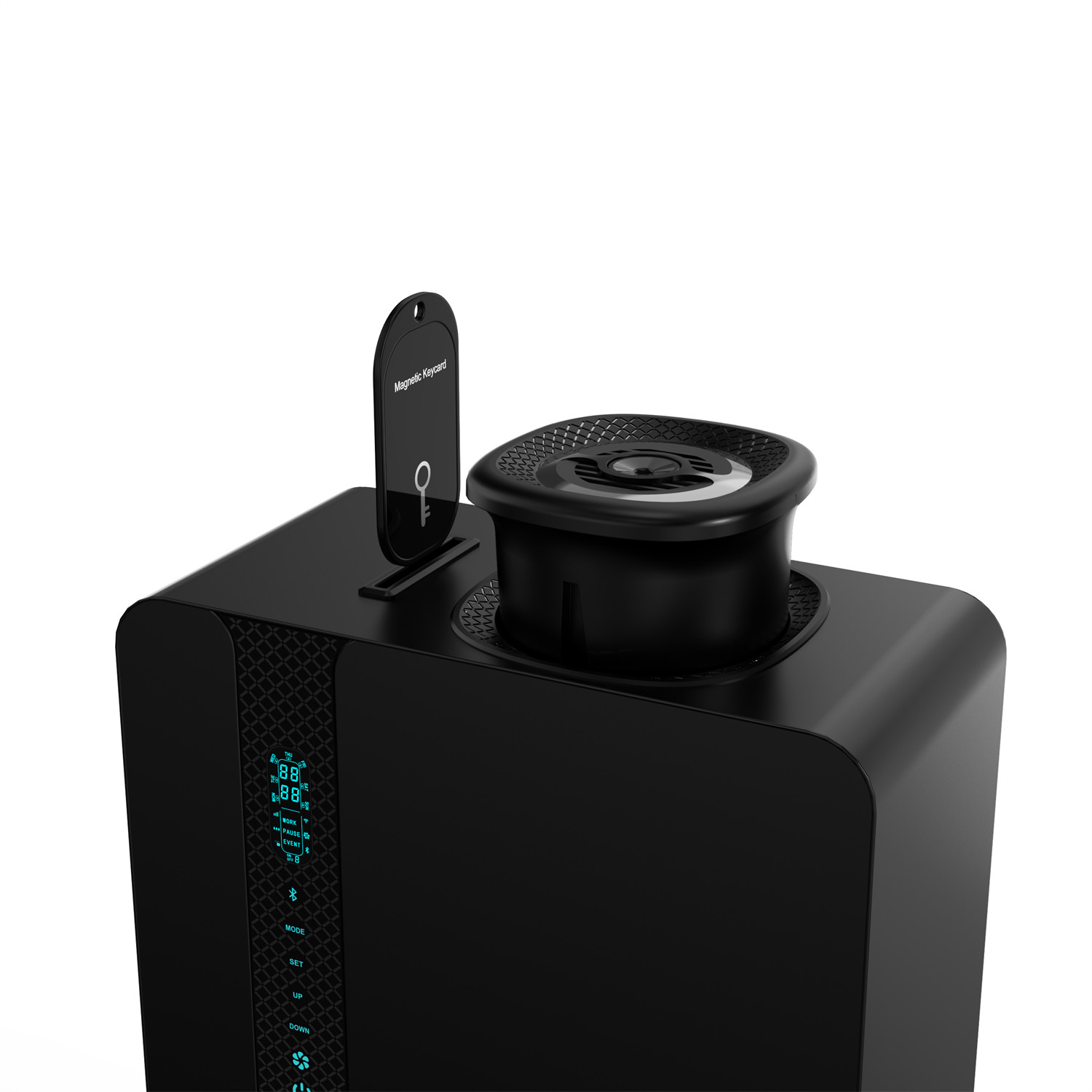 A: La bande LED fournit un état visuel immédiat du réservoir de 500 ml, affichant les niveaux Haut (Vert), Moyen (Jaune) ou Bas (Rouge) afin que votre équipe puisse le remplir d'un coup d'œil sans ouvrir l'unité.